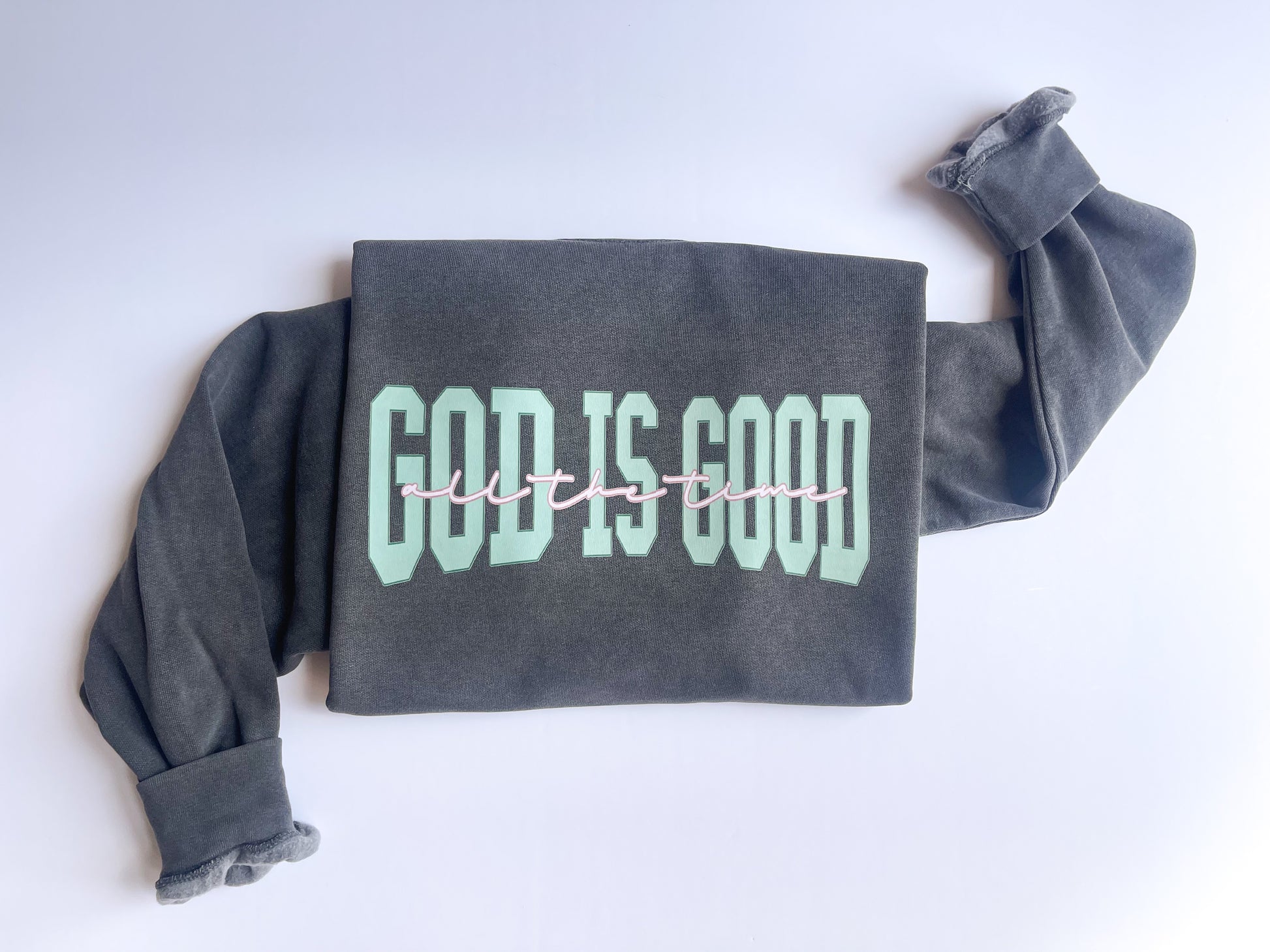 Introducing our **Pepper Comfort Colors Sweatshirt** featuring the uplifting message, *"God is Good All the Time."* Made from soft, premium cotton, this sweatshirt offers a cozy fit with a lived-in feel. The rich pepper hue pairs effortlessly with any outfit, while the timeless message serves as a daily reminder of faith and positivity. Perfect for layering on cooler days or lounging in comfort, this sweatshirt combines style and inspiration for everyday wear.