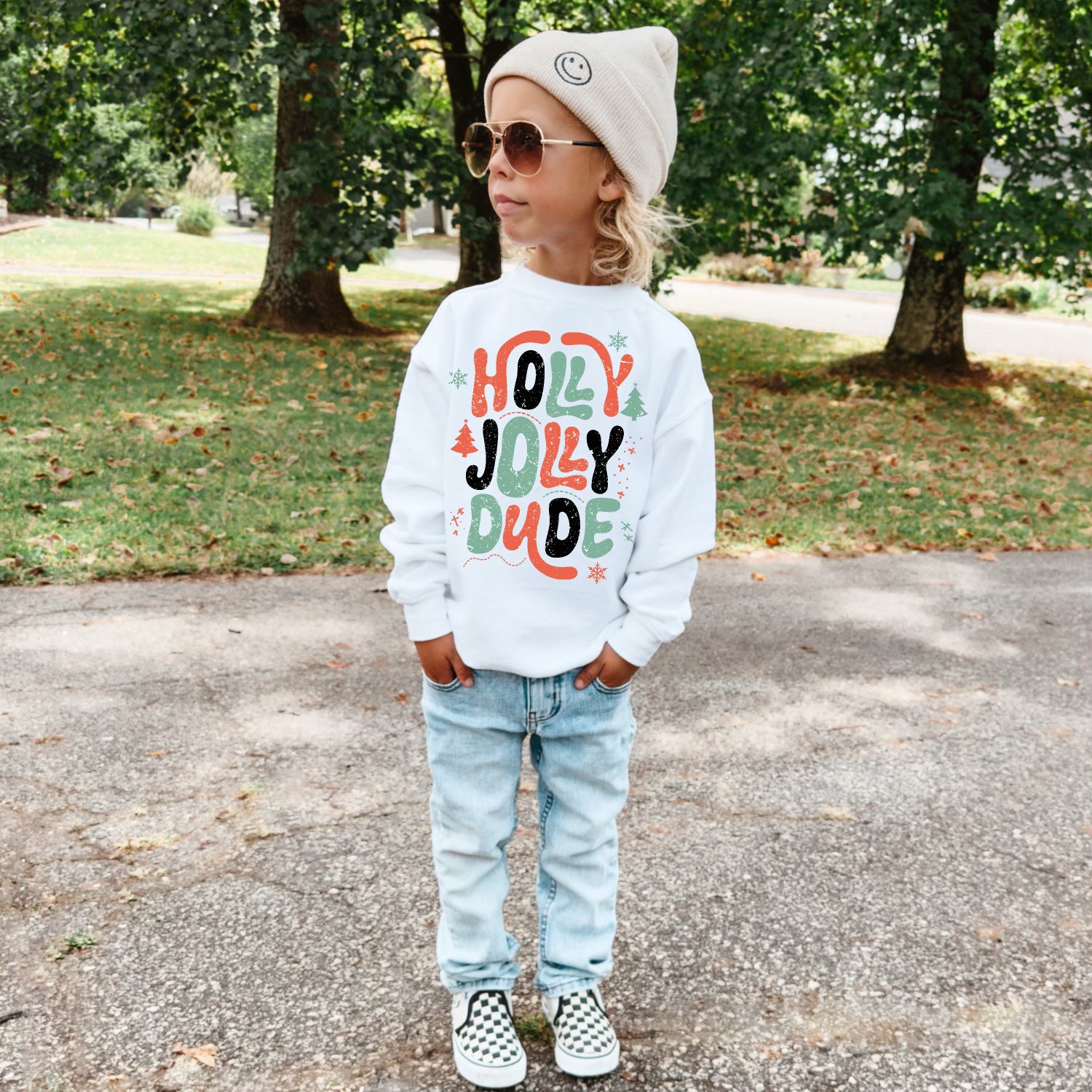 The Holly Jolly Dude sweatshirt is the perfect mix of festive fun and trendy style! With bold lettering and modern holiday colors, it’s cozy and cool for the season. Ideal for holiday gatherings or just showing off some cheerful vibes!