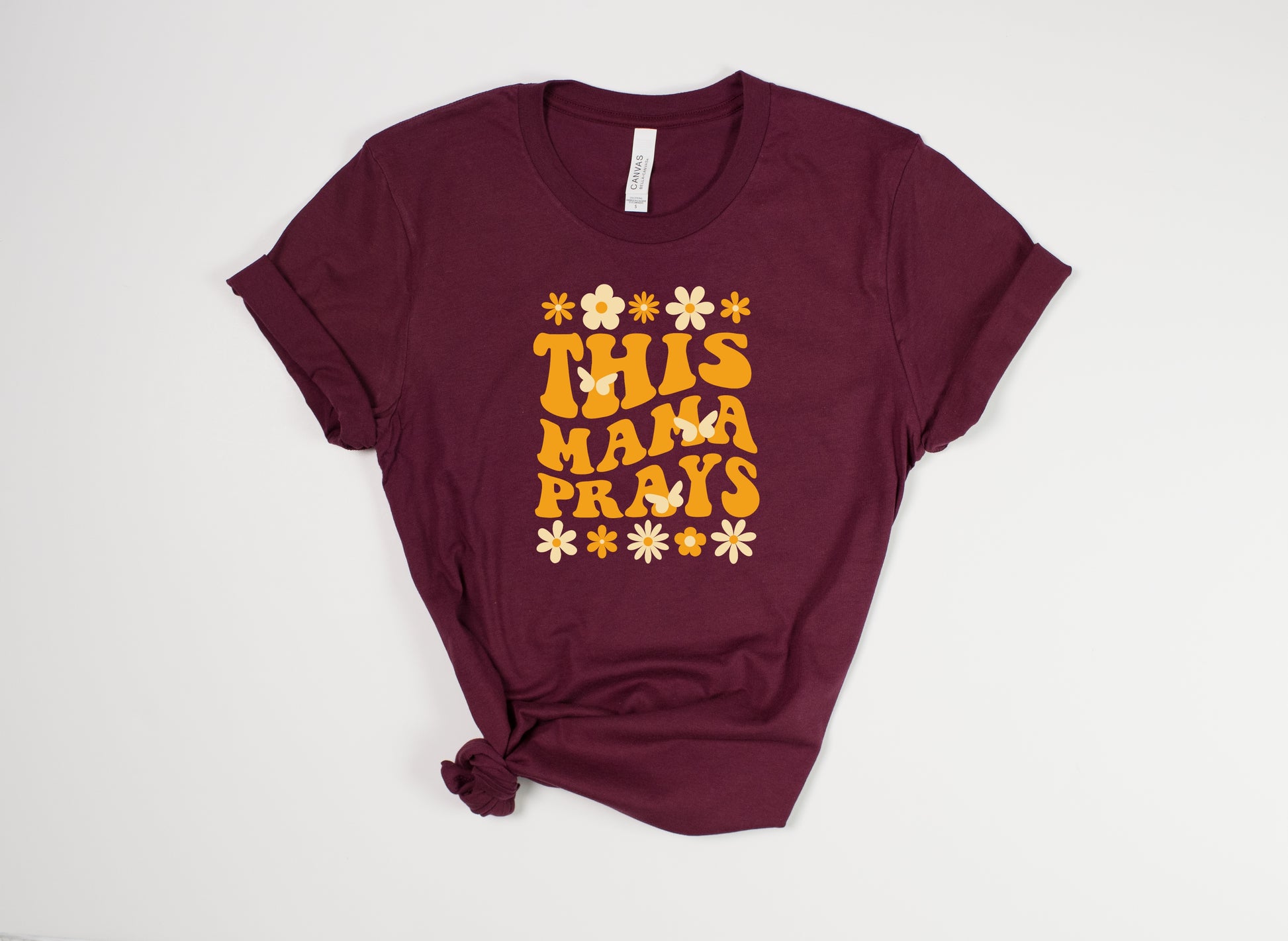 Introducing the "Mama Prays" Boho Tee! This stylish and meaningful tee celebrates the power of a mother's prayers. With a comfortable fit, it's perfect for everyday wear. Embrace the love and strength of a mother's prayers with this beautiful tee.