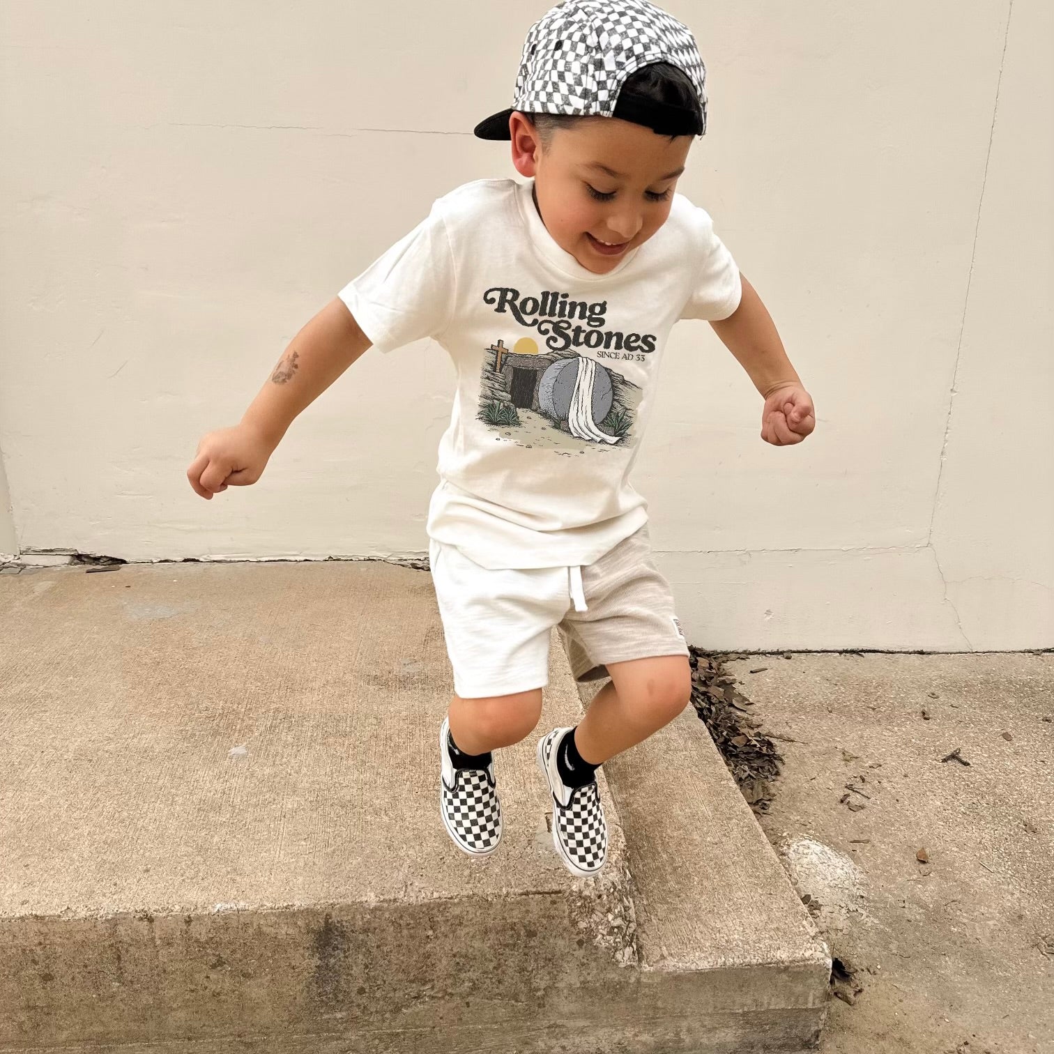 Start ’em young with bold faith and even bolder style. Our Rolling Stones with Jesus kids tee brings a fresh twist to timeless truth – because the stone was rolled away, and Jesus is alive! 🎸✝️