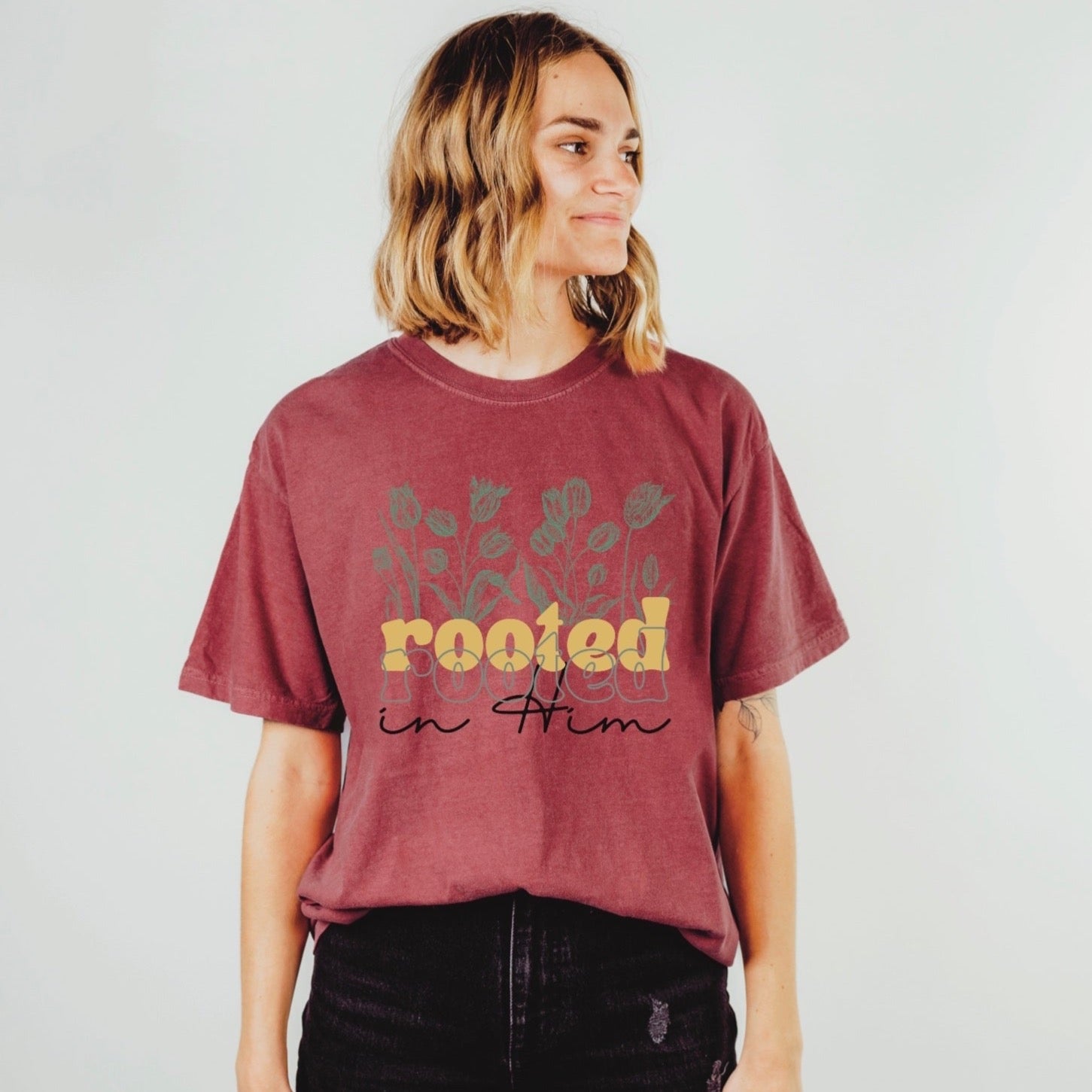 Embrace your faith and stay cozy in our 'Rooted in Him' Comfort Color Sweatshirt. This soul-soothing garment serves as a beautiful reminder of your deep connection to your spirituality. With its comfortable design and meaningful message, you can wear your faith with pride and warmth. Let this sweatshirt be a testament to your unwavering faith and the strength that comes from being firmly 'Rooted in Him.'