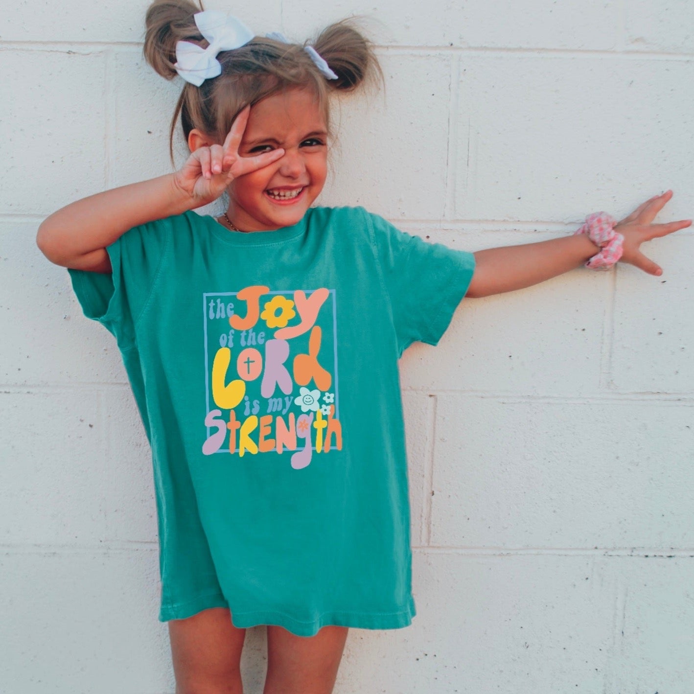 Nurture your child's faith journey with our 'The Joy of the Lord is My Strength' Comfort Color Tee. This joyful design serves as a reminder of the abundant happiness and strength found in faith. Crafted with comfort in mind, this tee allows kids to wear their faith proudly while feeling cozy and carefree. Encourage your little one to embrace the joy that comes from their spiritual connection, and let this tee be a source of inspiration and warmth on their path of faith.